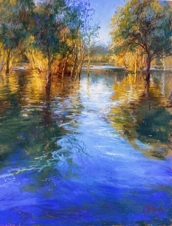 Light Lingers on the Riverbank (F) Pastel $980 available