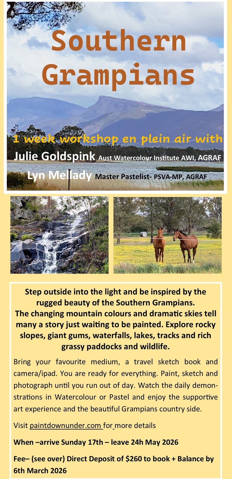 enquiries:- Visit www.paintdownunder.com fill in the Booking Enquiry form and send it for expressions of interest. Lyn or Julie will answer you via email or phone if you leave us your number.